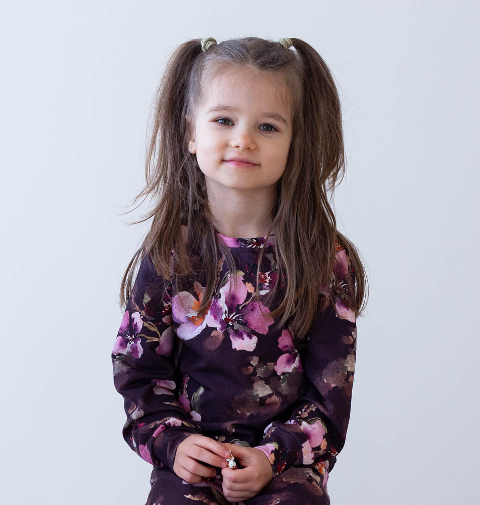 Collegepaita Mystic Flower luumu 98/104-134/140