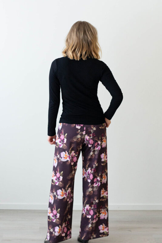 Naisten kauniisti laskeutuvat kuosilliset housut, joissa väljät täyspitkät lahkeet ja rento istuvuus. Vyötäröllä on joustava kuminauha. Monikäyttöinen luottovaate, jota on helppo yhdistellä asukokonaisuuksiin ympäri vuoden. Tuote on suunniteltu ja valmistettu Suomessa. Tuotteelle on myönnetty suomalaisesta työstä kertova Avainlippu-merkki.
