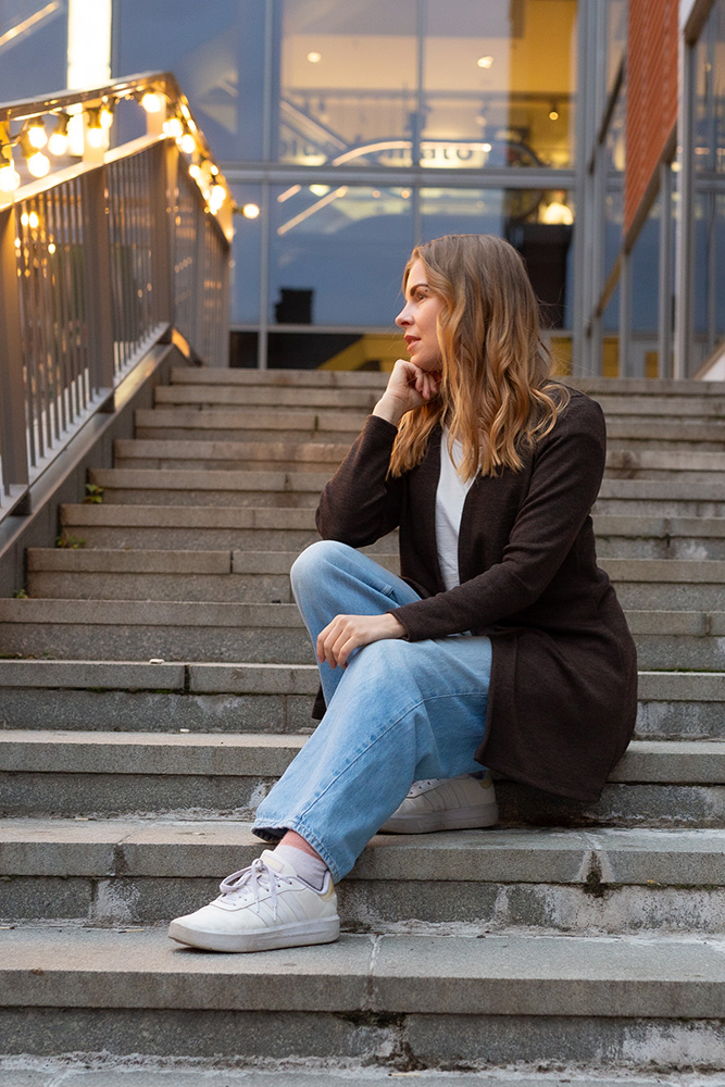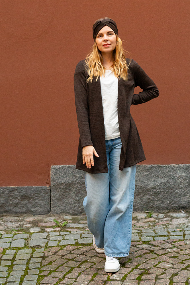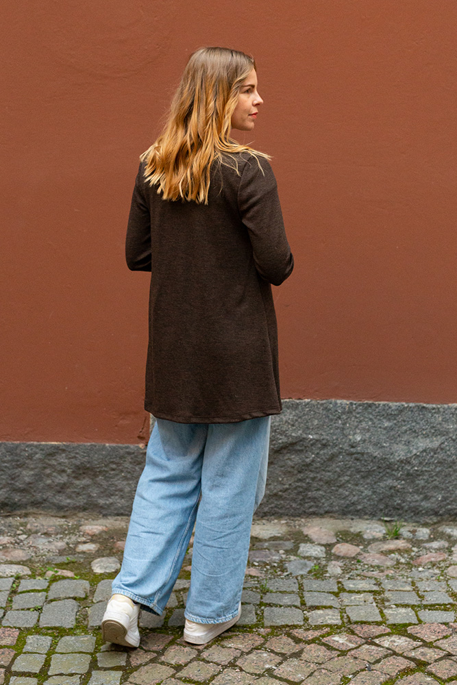 Pehmeä ja lämmin merinovillainen neuletakki, jossa klassisen kaunis istuva mitoitus ja hieman lyhyempi helman pituus. Luottomalli, joka on pysynyt mallistossamme useita vuosia. Tämä hieman lyhyempi helman pituus on monikäyttöinen ja mahtuu hyvin myös päällystakin alle. Materiaali on kotimaista interlockneulosta, joka on 100 % merinovillaa (mulesing-vapaa). Neuletakki on suunniteltu ja valmistettu Suomessa ja sille on myönnetty suomalaisesta työstä kertova Avainlippu-merkki.