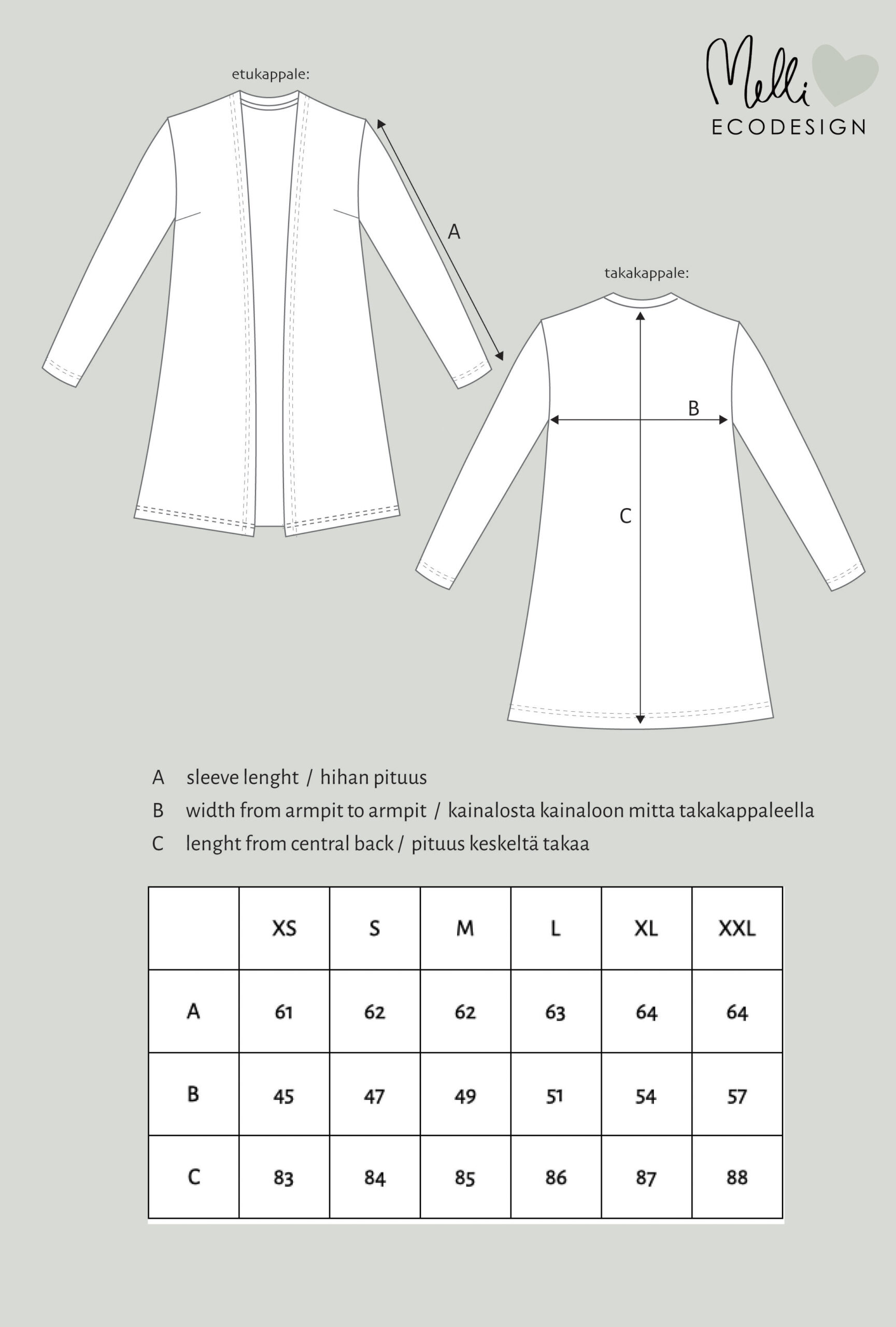 - Mittataulukon mitat saattavat vaihdella hieman vaatteen materiaalista riippuen.