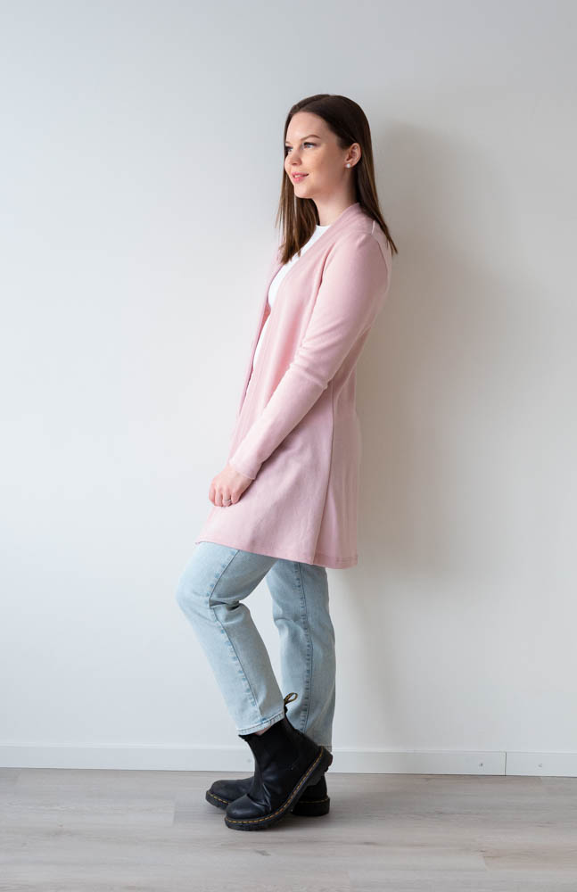 Pehmeä ja lämmin merinovillainen neuletakki, jossa klassisen kaunis istuva mitoitus ja hieman lyhyempi helman pituus. Luottomalli, joka on pysynyt mallistossamme useita vuosia. Tämä hieman lyhyempi helman pituus on monikäyttöinen ja mahtuu hyvin myös päällystakin alle. Materiaali on kotimaista interlockneulosta, joka on 100 % merinovillaa (mulesing-vapaa). Neuletakki on suunniteltu ja valmistettu Suomessa ja sille on myönnetty suomalaisesta työstä kertova Avainlippu-merkki.