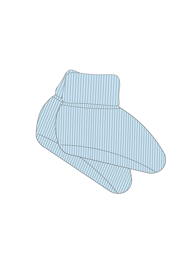 Kauniit ribbineuloksesta valmistetut vauvan tossut pitkillä resorivarsilla. Materiaali on pehmeää ribbineulosta, joka sisältää 95 % luomupuuvillaa ja 5 % elastaania. Tuote on suunniteltu ja valmistettu Suomessa. Tuotteelle on myönnetty suomalaisesta työstä kertova Avainlippu-merkki.