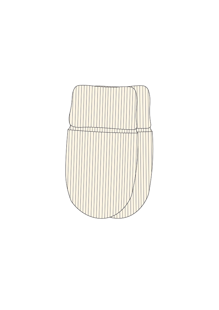 Kauniit ribbineuloksesta valmistetut vauvan tumput pitkillä resorivarsilla. Materiaali on pehmeää ribbineulosta, joka sisältää 95 % luomupuuvillaa ja 5 % elastaania. Tuote on suunniteltu ja valmistettu Suomessa. Tuotteelle on myönnetty suomalaisesta työstä kertova Avainlippu-merkki.