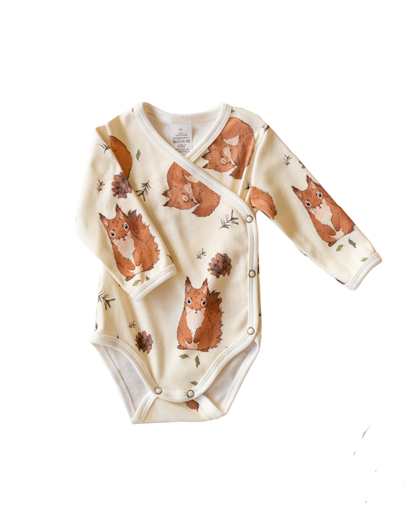 Vauvan kietaisubody. Materiaali on pehmeää interlocktrikoota, joka on 100 % luomupuuvillaa. Tuote on suunniteltu ja valmistettu Suomessa. Tuotteelle on myönnetty suomalaisesta työstä kertova Avainlippu-merkki.