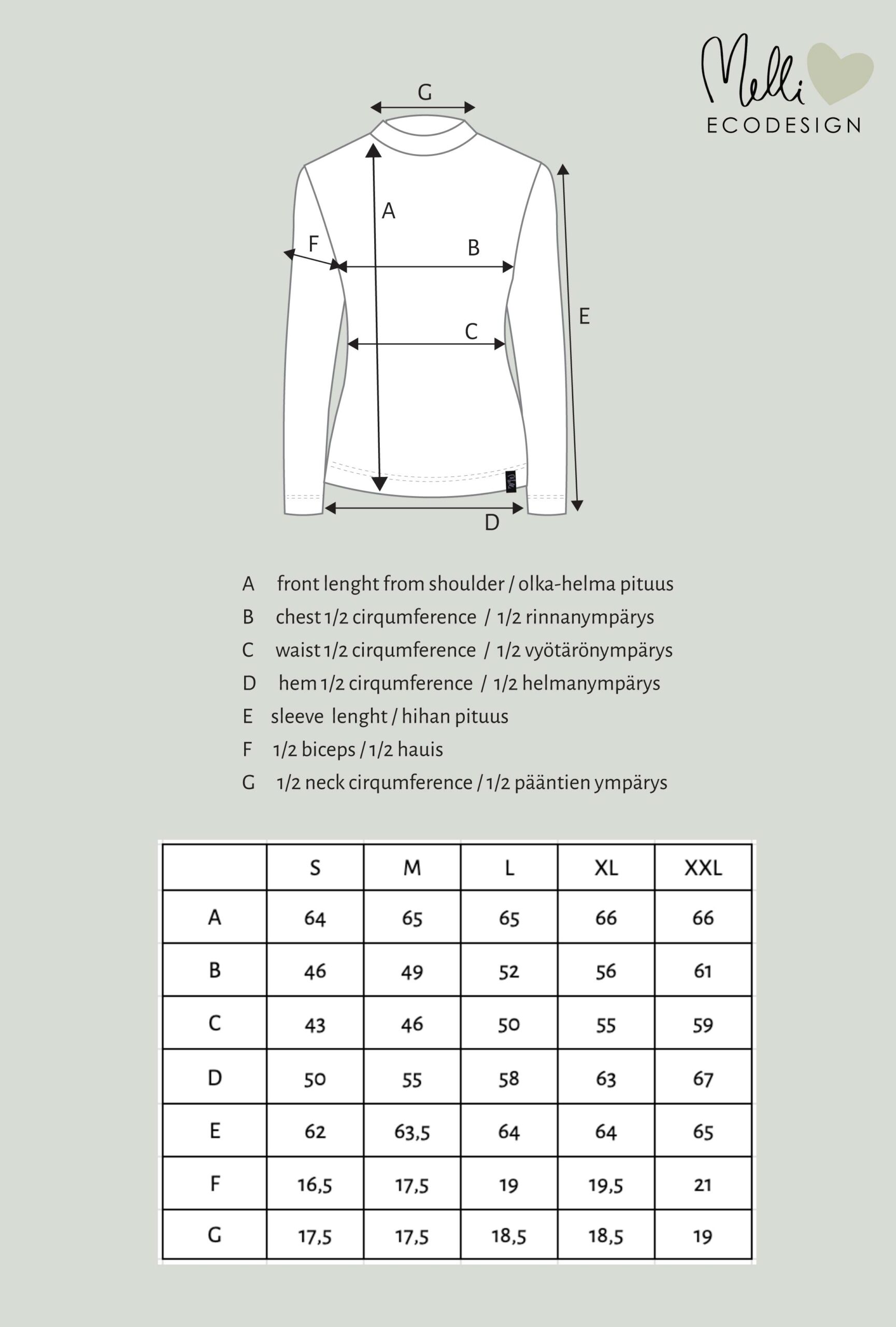 - Mittataulukon mitat saattavat vaihdella hieman vaatteen materiaalista riippuen.