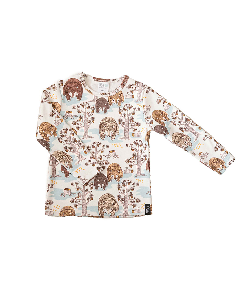 Materiaali on pehmeää interlocktrikoota, joka on 100 % luomupuuvillaa. Suosittelemme pesemään vaatteen ennen ensimmäistä käyttökertaa, jotta vaatteesta ei irtoa väriä. Pesu nurinpäin 40 asteessa samanväristen kanssa, ei rumpukuivausta. Tuote kutistuu pesussa noin 5 %. Hoitamalla vaatteita oikein takaat vaatteille pidemmän käyttöiän.