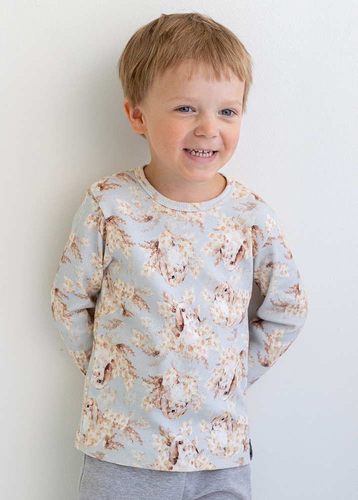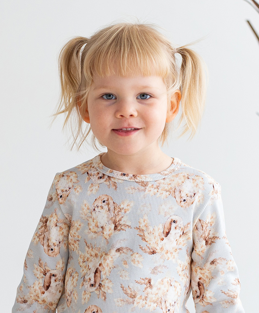 Yhdistele alaosaksi paitaan kauniisti sopivia yksivärisiä tai kuosillisia ribbineuloksesta valmistettuja lasten legginsejämme tai collegesta valmistettuja polvipaikkahousujamme.