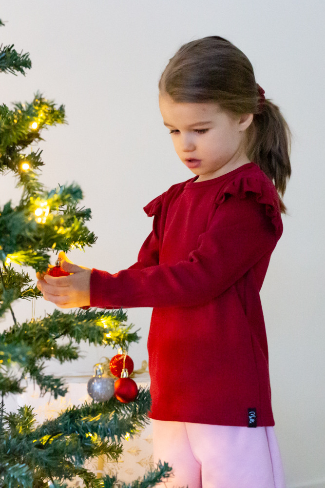 Ribbipaita röyhelöhihoilla burgundy 86/92-122/128