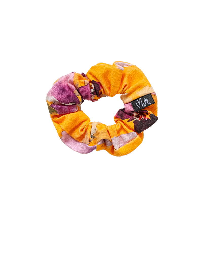 Kaunis kukkakuosinen hiusscrunchie, joka sopii lapsille tai aikuisille. Materiaali on pehmeää interlockneulosta, joka on 100 % luomupuuvillaa. Tuote on suunniteltu ja valmistettu Suomessa. Tuotteelle on myönnetty suomalaisesta työstä kertova Avainlippu-merkki.