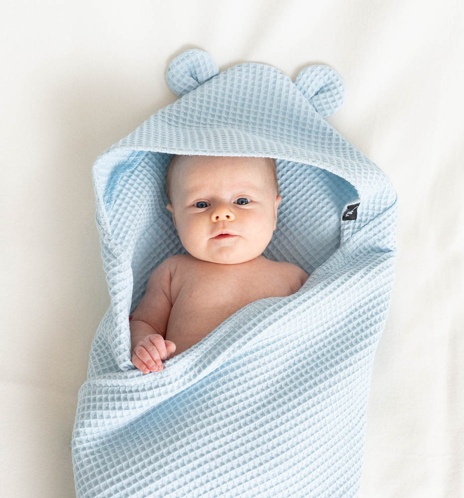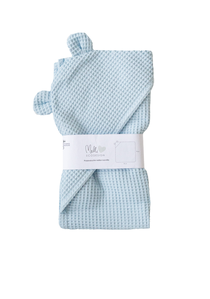 Vauvan huppupyyhe nallen korvilla vaaleansininen