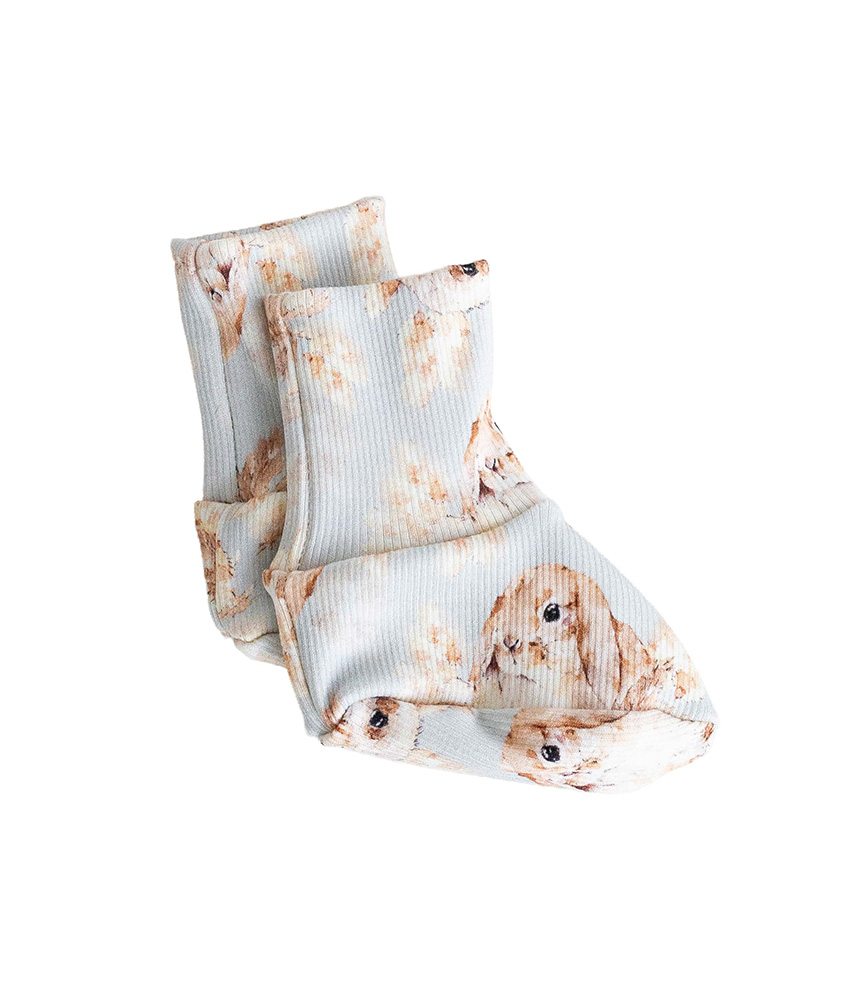Yhdistele asusteeseen samaa sävyä olevat ribbineuloksesta valmistetut vauvan tumput.